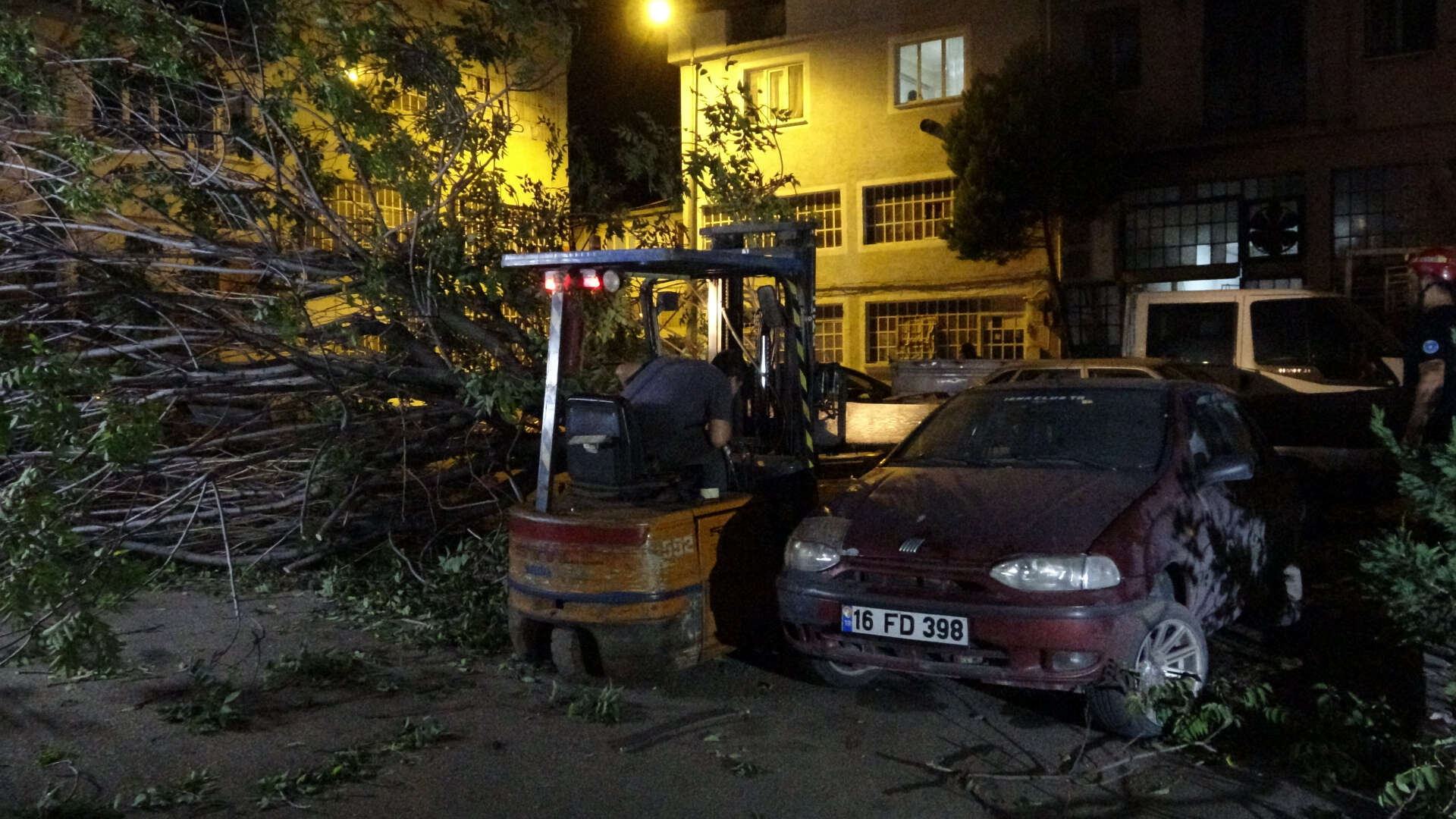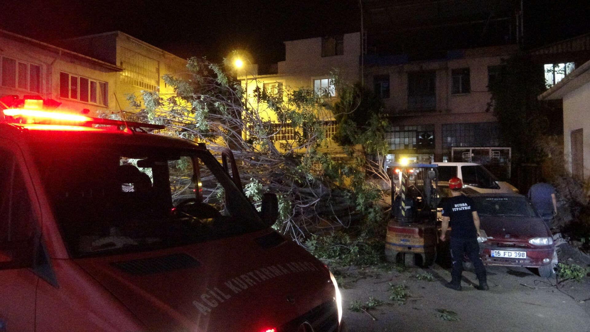 Bursa'da ağaç park halindeki 3 otomobilin üzerine devrildi. Şans eseri o esnada kimsenin bulunmaması büyük bir faciayı önlerken araçlarda maddi hasar meydana geldi.