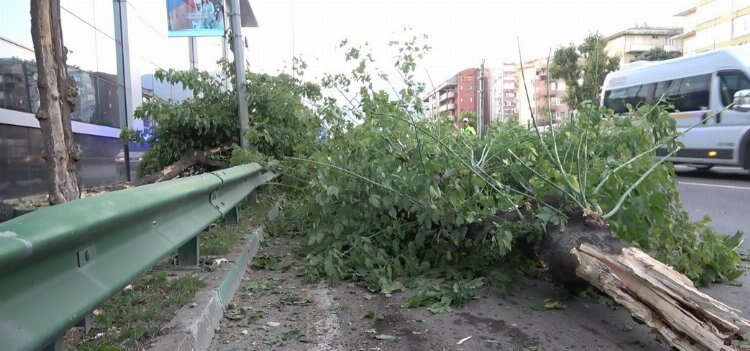 Bursa'da ağaçları yerinden söken kamyonet yan yattı: 2 kişi yaralandı