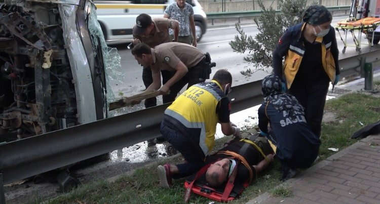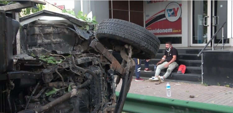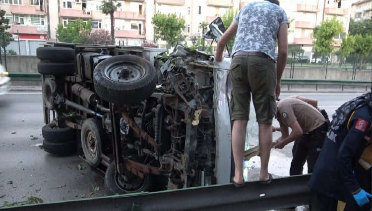 Bursa Mudanya Yolu istikametine seyir halinde olan Orhan Tosun (40) yönetimindeki 06 CED 88 plakalı kamyonet, kontrolden çıktı. Sürücünün direksiyon hakimiyetini kaybetmesiyle, yol kenarında bulunan bariyerlere ve ağaçlara çarpan kamyonet yan yatarak sürüklendi.