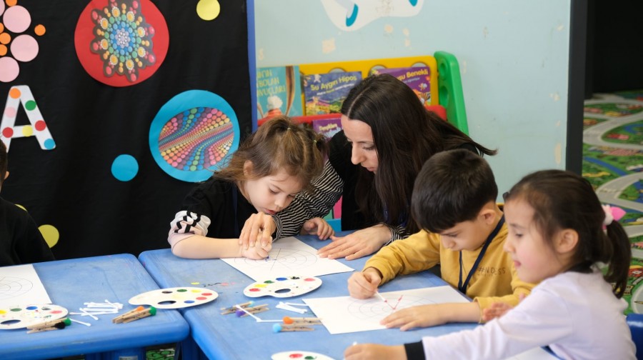 Bursa'da Ana Kucağı Okul Öncesi Eğitim Merkezleri başta olmak üzere eğitime değer katan yatırımları bir bir hayata geçiren Büyükşehir Belediyesi, çocukları yarıyıl tatilinde de yalnız bırakmadı. 4-6 yaş aralığındaki çocuklar için yarıyıl tatilinde Ana Kucağı Çocuk Eğitim Merkezlerinde özel etkinlikler düzenlendi. Çocukların yaratıcılıklarını geliştirmek, öğrenme süreçlerini desteklemek ve sosyal becerilerini artırmak amacıyla düzenlenen atölye çalışmaları, miniklere eğlenceli bir öğrenme deneyimi yaşattı. Hafta boyunca Ana Kucağı Çocuk Eğitim Merkezleri'nde gerçekleştirilen etkinlikler arasında Vatan Ana Kucağı'nda Renkli Kuklalar Çalışması, Alacahırka Ana Kucağı'nda Kar Deneyi ve Kar Küresi yapımı, Hocataşkın Ana Kucağı'nda Tohum Topu Yapımı, Mudanya Ana Kucağı'nda Dot Mandala, Emek Ana Kucağı'nda Adımın Baş Harfi Tasarım Çalışması ve Muradiye El Yazmaları Müzesi'nde Kudüs'ün Renkleri atölye çalışmaları büyük ilgi gördü.