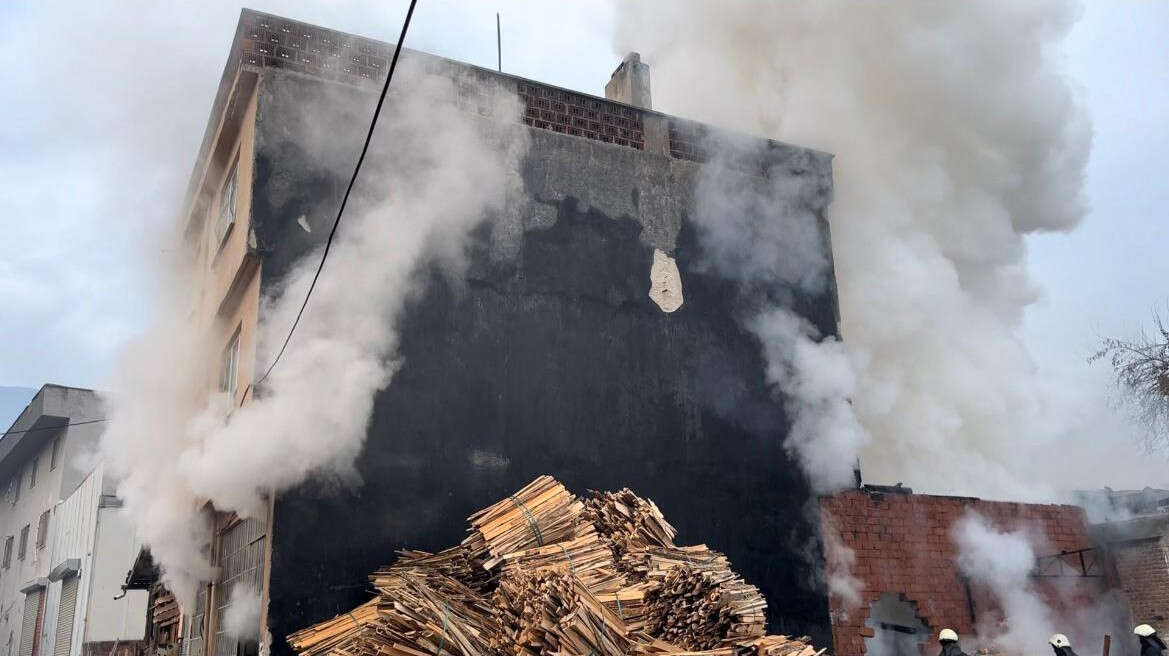 Bursa’da apartmanın altındaki kereste deposu alev alev!