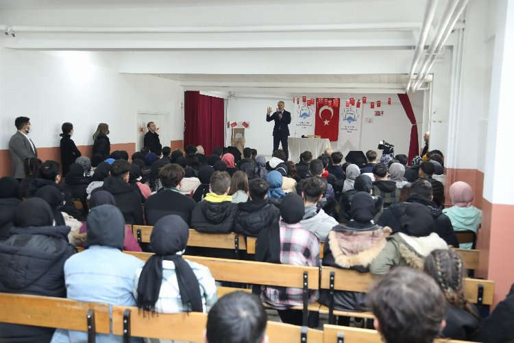 Öğrencilerin ve öğretmenlerin yoğun katılım sağladığı programda, Büyükşehir Belediye Başkanı Alinur Aktaş, gençlere nasihatlerde bulundu. Bursa ve Büyükşehir Belediyesi’nin çalışmaları hakkında anlatımlarda bulunan Başkan Aktaş, belediye başkanlığı görevinden önceki iş hayatı hakkında gençleri bilgilendirdi.