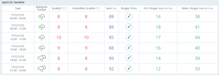 SAATLİK HAVA DURUMU TAHMİNİ
