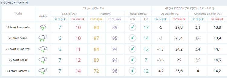 BURSA İÇİN 5 GÜNLÜK HAVA DURUMU TAHMİNİ