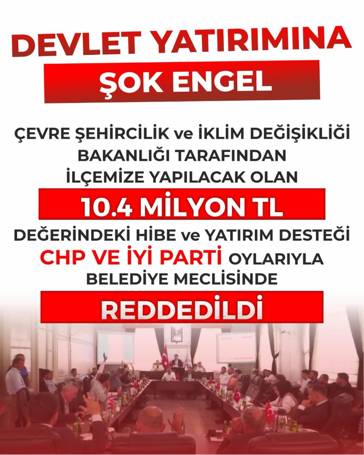 Yenişehir’imizin geleceği adına, Çevre, Şehircilik ve İklim Değişikliği Bakanlığımızdan sağladığımız milyonlarca liralık hibe ve yatırım desteği, ne yazık ki bugün yaptığımız Yenişehir Belediye Meclis Toplantısı’nda CHP ve İYİ Parti’li meclis üyelerinin oylarıyla REDDEDİLDİ.