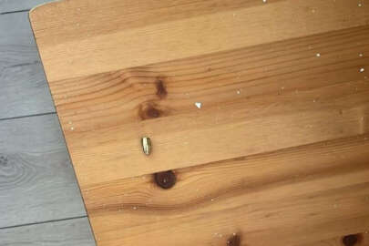 Sabah uyandıklarında evin oturma odasının tavanının delik olduğunu fark eden ev sahibi yerdeki mermi çekirdeğini görünce şaşkına uğradı.
