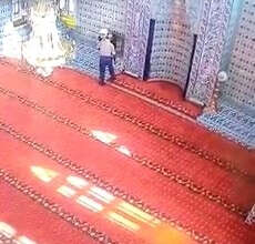 Caminin güvenlik kamerasına yansıyan görüntülerde, bir kişinin camiye girerek önce etrafı kontrol ettiği görüldü. Daha sonra hırsız mihrabın yanında duran iki şamdanın önce fişlerini çekerek daha sonrasında alıp camiden çıktı.