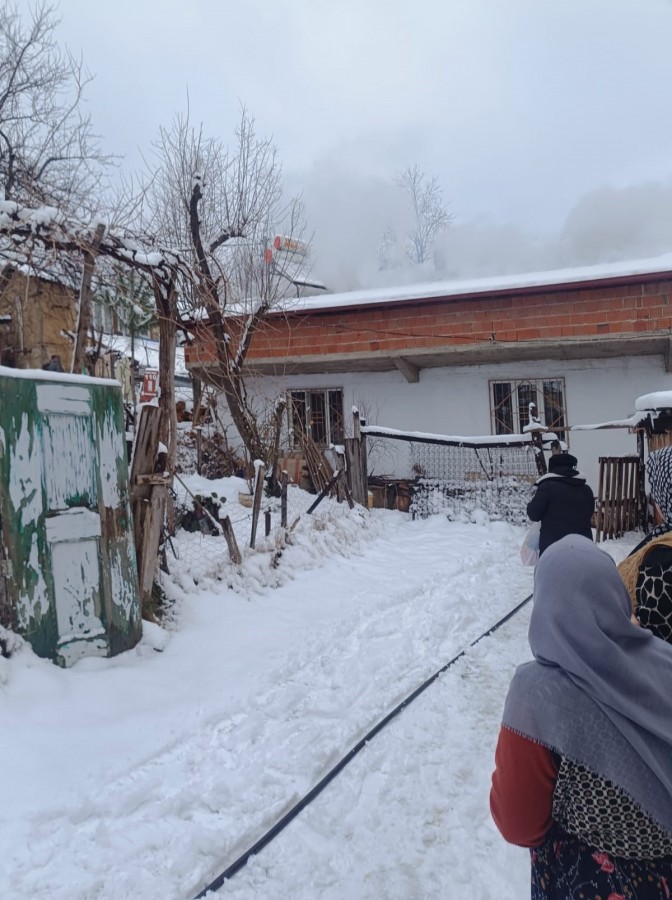Bursa'nın İnegöl ilçesinde bulunan tek katlı evin çatısında yangın çıktı.