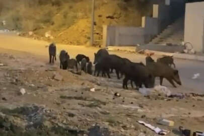 Mudanya ilçesi Ömerbey Mahallesi'nde aç kalan domuz sürüsü, yemek aramak için şehir merkezine indi. Sürü, çöp konteynırlarında bir süre yemek aradıktan sonra geldikleri ormanlık alana geri giderek gözden kayboldular.