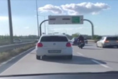 Üç şeridin tamamını kapatan grup, diğer sürücüleri çileden çıkardı.