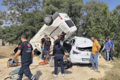 2'si ağır 3 kişi yaralanırken, kaza yeri havadan görüntülendi. Sağlık ve kurtarma ekipleri zamanla yarışırken, ambulans görevlisinin otomobil sürücüne takılan serumu uzun süre havada tutarak akışını sağlaması dikkat çekti. Kaza anı da güvenlik kamerasına yansıdı.