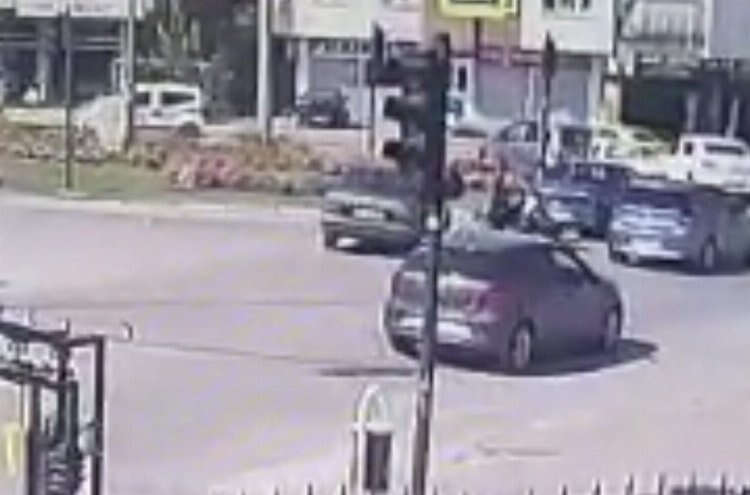 Kaza anı bir işyerinin güvenlik kameralarına saniye saniye yansırken, polis kazayla ilgili inceleme başlattı.