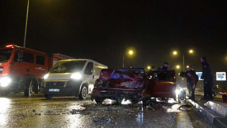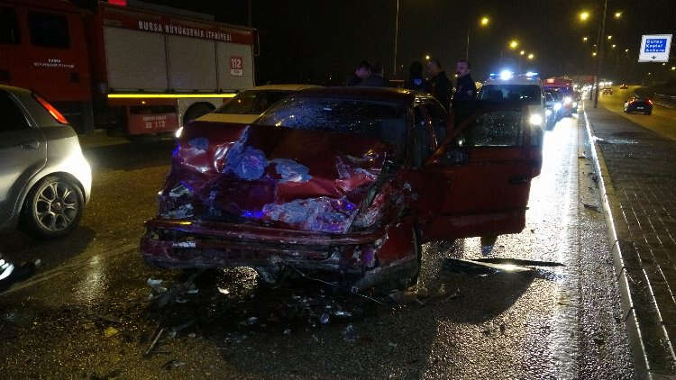 Kaza, saat 23.00 sıralarında merkez Osmangazi ilçesi Demirtaş Yolu Caddesi'nde meydana geldi. Edinilen bilgiye göre, Kadir Yaman (30) idaresindeki 16 LJ 883 plakalı otomobil, yağmur nedeniyle kayganlaşan yolda sürücüsünün kontrolünden çıkarak karşı yola uçtu.