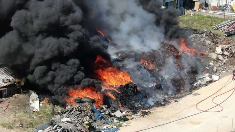Bursa’da geri dönüşüm tesisinde meydana gelen yangın paniğe neden olurken, itfaiye ekiplerinin hızlı müdahalesiyle söndürüldü. Yangın anları dronla havadan görüntülendi.