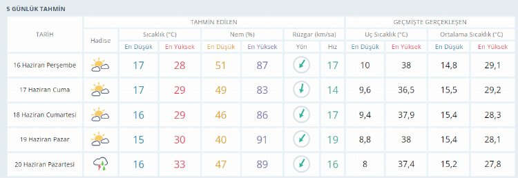 Bursa için 5 Günlük Hava Tahmin Raporu