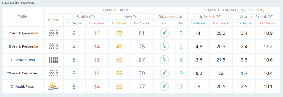 BURSA'DA 5 GÜNLÜK HAVA DURUMU TAHMİNİ