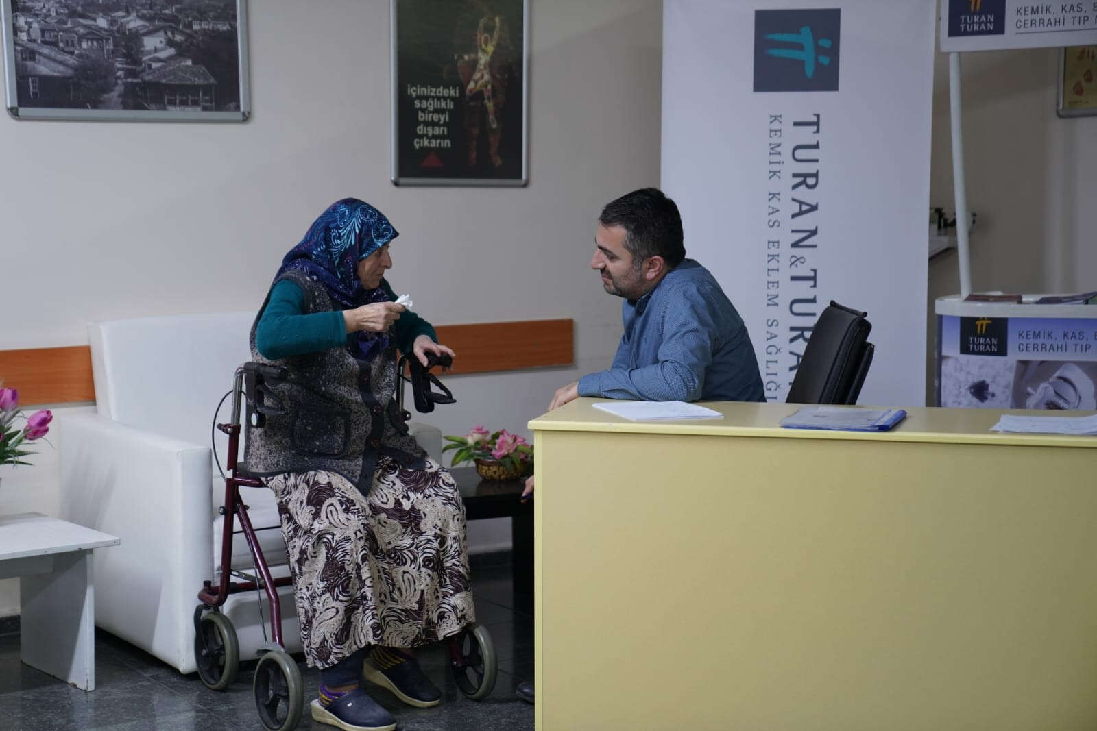 Bursa Büyükşehir Belediyesi Huzurevi'ni ziyaret eden Turan Turan Kemik Kas Eklem Sağlığı Merkezi hekimlerinden Doç. Dr. Hanifi Üçpunar, huzurevi sakinlerinin ortopedik muayeneleri gerçekleştirdi.