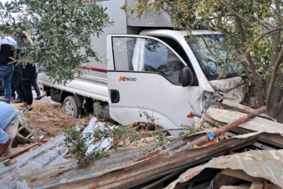 Bursa'da ıslak yolda kayan kamyonet bahçe duvarına çarptı