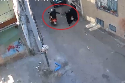 K.A.'nın yürüdüğü esnada sırt çantasını motosikletli iki şüphelinin kapkaç yöntemiyle çaldığı anlar sokak üzerinde bulunan bir evin güvenlik kamerasına saniye saniye yansıdı.