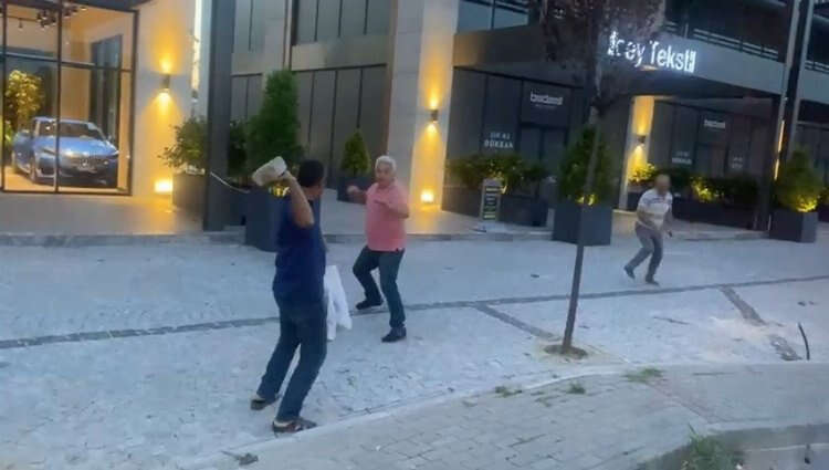 Yere düşen kişi, tekmelerden kurtulamadı.