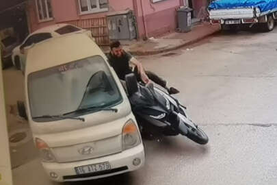 Bursa'nın İnegöl ilçesinde meydana gelen kazada kamyonet ile çarpışan motosikletin sürücüsü yaralandı. Kaza anı bir işyeri güvenlik kameralarına saniye saniye yansıdı.