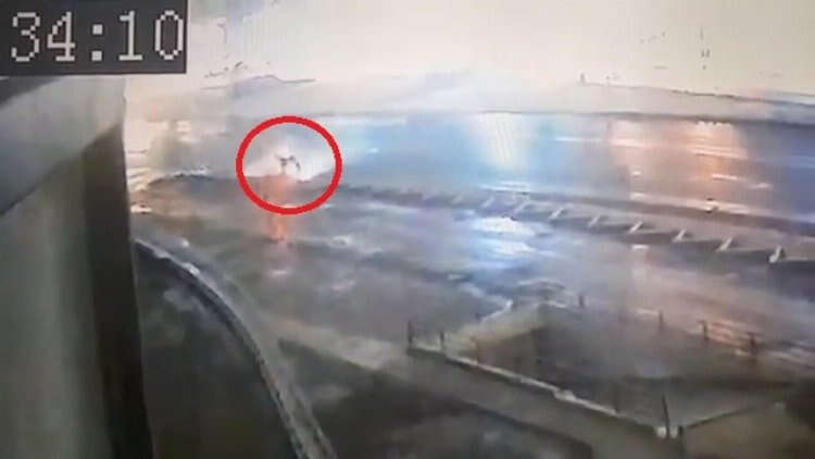 Polis ekipleri yolda güvenlik önlemi alırken, kaza anı bir işyerinin güvenlik kamerasına anbean yansıdı.