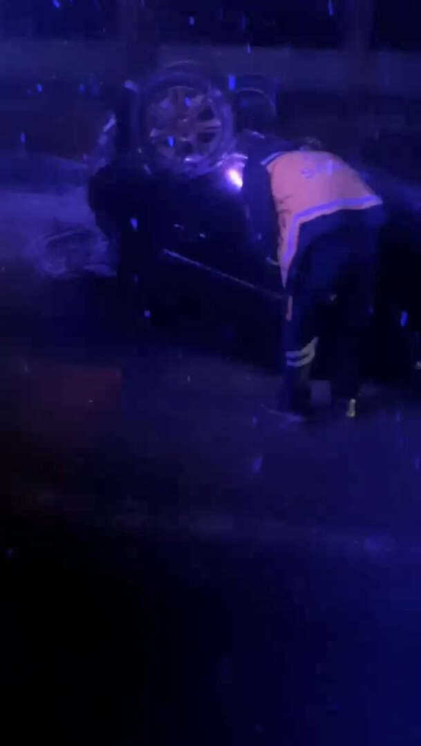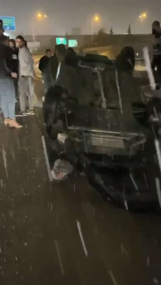 Edinilen bilgiye göre, kar yağışı sebebiyle kayganlaşan yolda direksiyon hakimiyetini kaybeden otomobil sürücüsü, ana yolda takla atarak metrelerce sürüklendi.