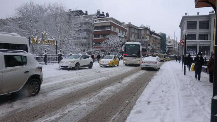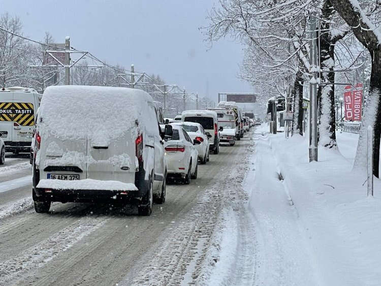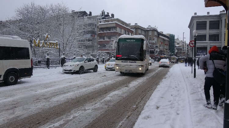 Bursa'da ana yollar, caddeler ve sokaklar karla kaplanınca araç sürücüleri mahsur kaldı. İşe gitmek isteyen bazı vatandaşlar ise otobüs gelmeyince yürümek zorunda kaldı.