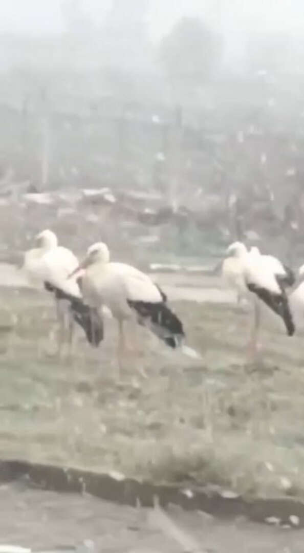 Nilüfer ilçesine bağlı Badırga Mahallesi'nde donmak üzere olan bir grup leylek, bir vatandaşın cep telefonu kamerasına yansıdı.