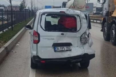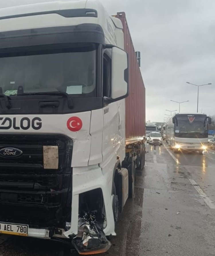 Bursa'da kırmızı ışıkta bekleyen araca tır çarptı!