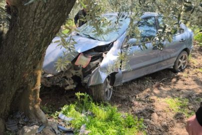 Köpeğe çarpmamak için manevra yapan sürücü, yol kenarındaki zeytin tarlasına daldı.