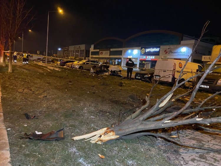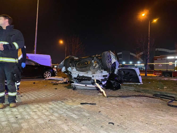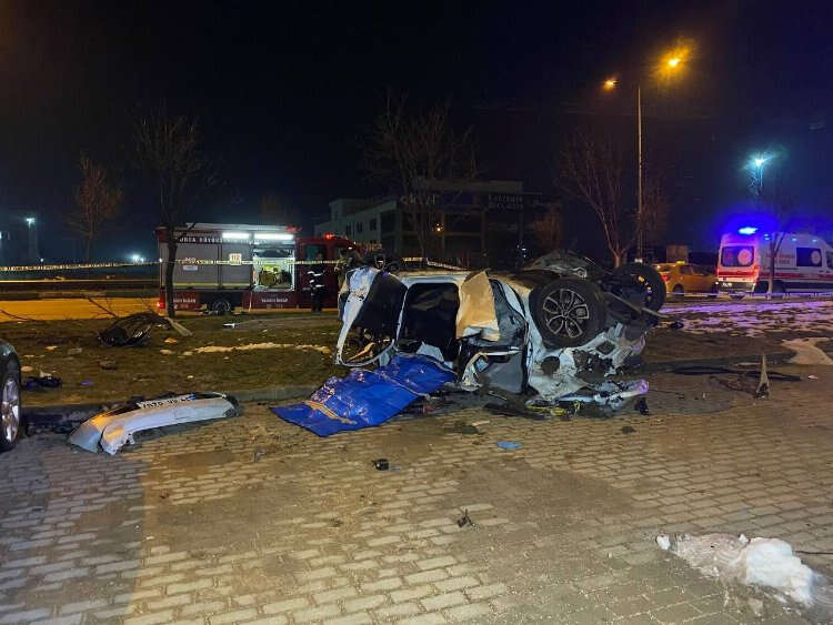 Öte yandan otomobilin kaldırıma çarparak havalandığı ve yol kenarındaki ağaçları devirerek 50 metre boyunca taklalar attığı öğrenildi.