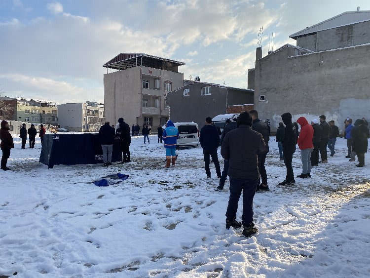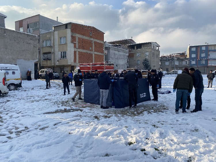 Bursa merkez Yıldırım ilçesi Ulus Mahallesi’de bulunan bir arsadan geçen bir kişi karların arasından hareketsiz yatan birini gördü.