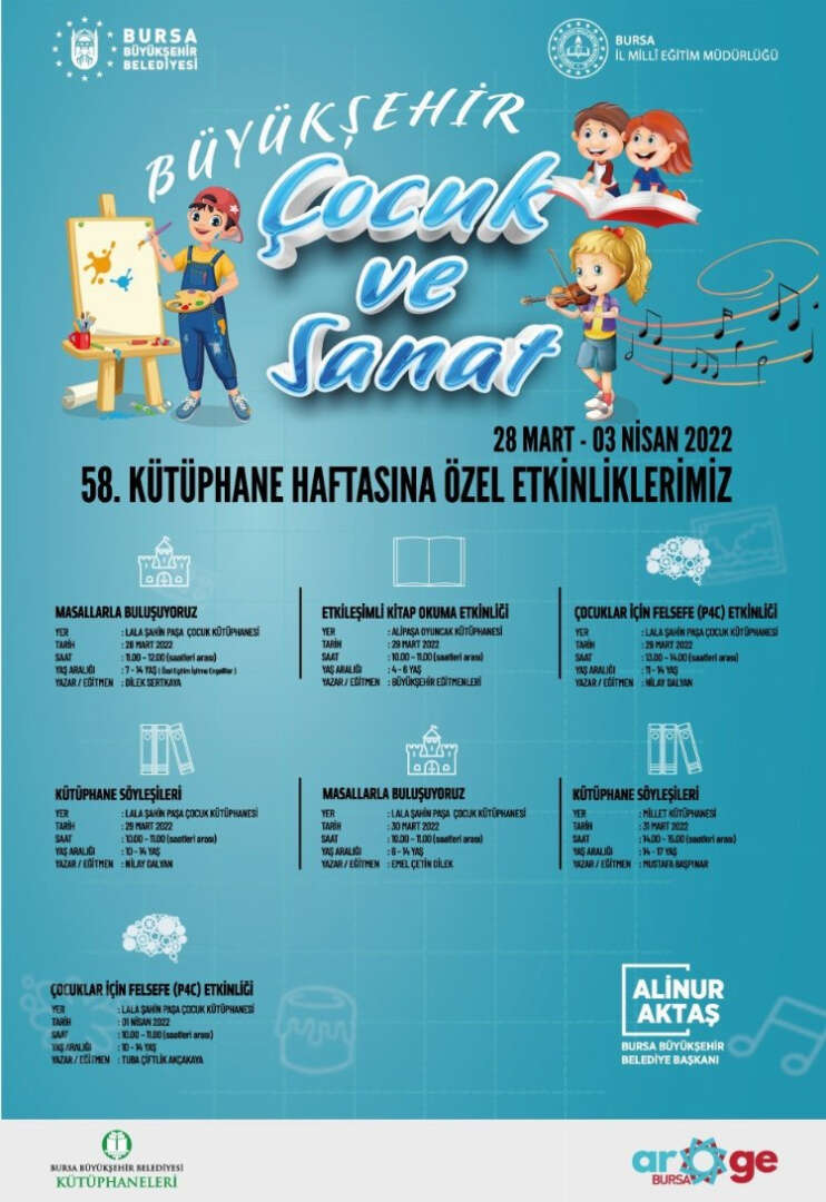 Bursa’da kitap okuma alışkanlığının artırılması hedefiyle birbirinden farklı etkinliklere imza atan Büyükşehir Belediyesi, 58’inci Kütüphane Haftası’nı özellikle çocuklar için adeta şenliğe dönüştürecek. Çocuklar, masal dinletilerinden söyleşilere kadar birbirinden farklı etkinlikler ile kütüphanelerde keyifli bir hafta geçirecek.