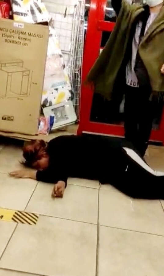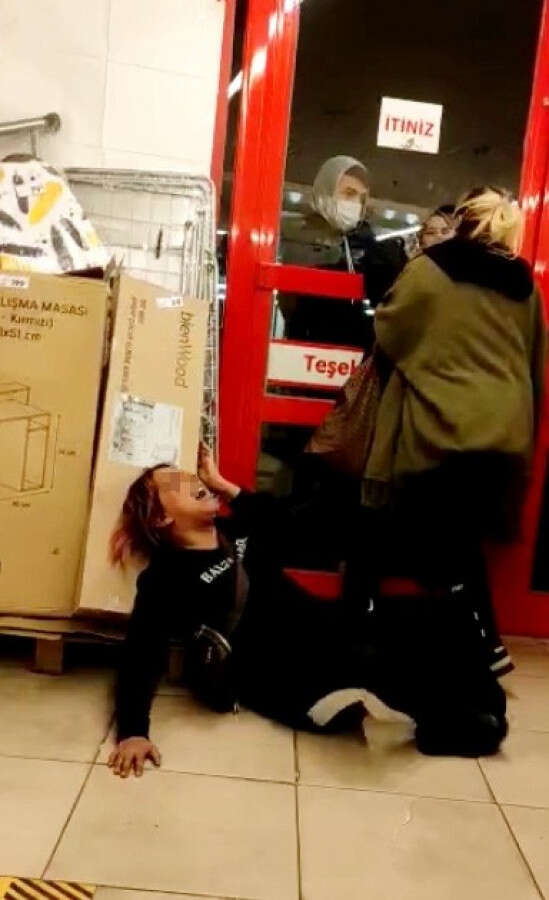 Hırsızlık şüphelisi 2 kadın, hırsızlık yapmadıklarını, kasaya para ödemeyi unuttuklarını belirterek, kendilerini yerden yere attı. Şüphelilerinden birisi, hamile olduğunu ve kasiyerin kendisine uçan tekme attığını iddia etti. Öfkeli kadın, bebeğinin düşmesi durumunda market çalışanlarını da pompalı tüfekle öldüreceğini söyleyip tehdit etti. Market çalışanlarının ihbarı üzerine markete polis ekipleri geldi.