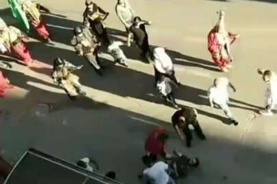 Mehter takımı geçtiği sırada tekme tokat kavga eden iki kişi kameraya yansıdı. Görüntülerde bir kişinin yerde darp edildiği ve çevredeki vatandaşların araya girerek ayırmaya çalıştığı görüldü.