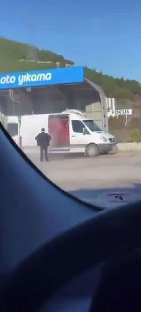 Bursa'da bir akaryakıt istasyonunun oto yıkama alanında minibüs içindeki sucukların yıkandığı görüntüler ortaya çıktı.