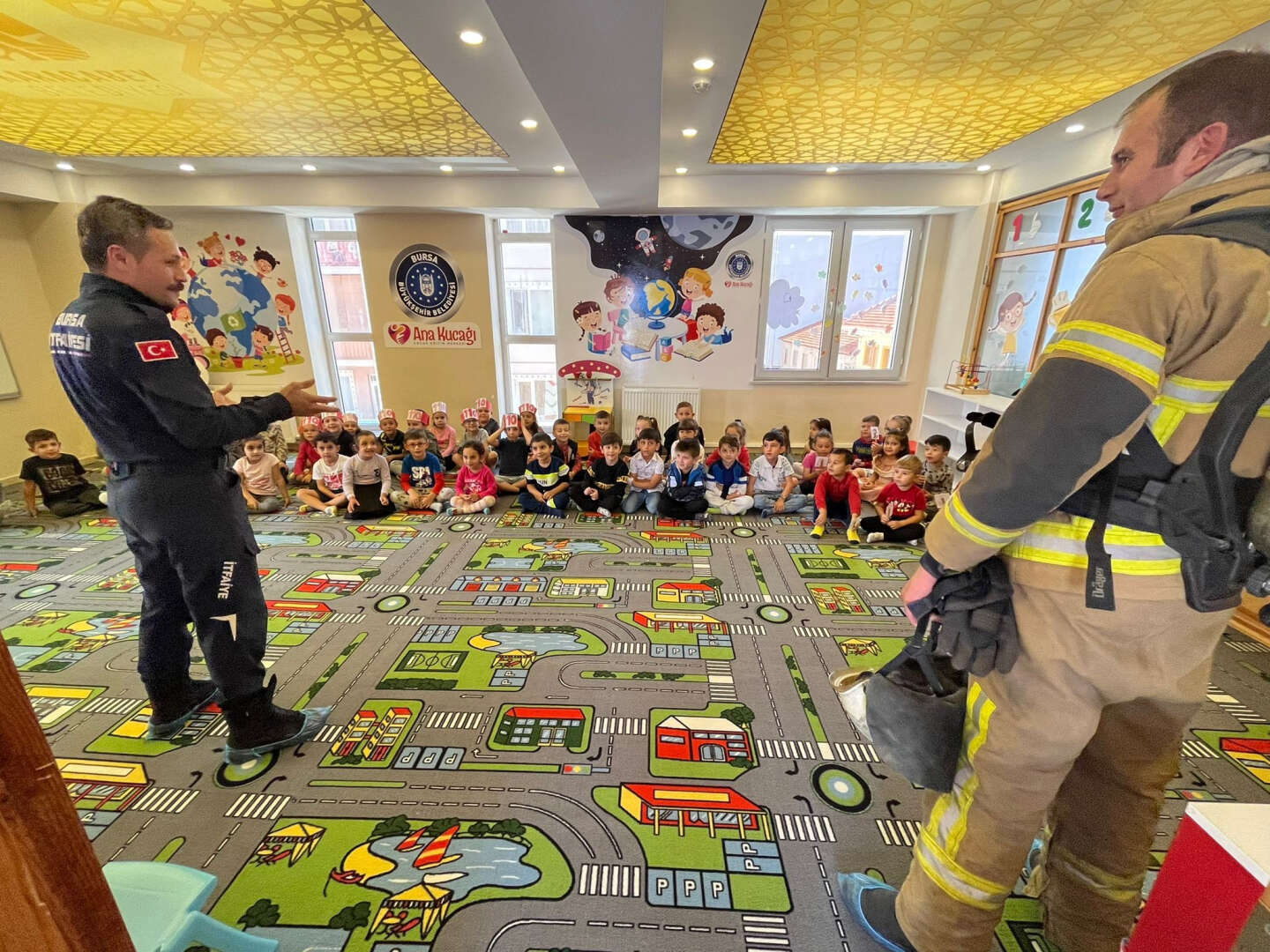 İtfaiye Haftasını Bursa’da farklı etkinliklerle kutlayan Büyükşehir Belediyesi İtfaiye Daire Başkanlığı ekipleri, özellikle Ana Kucağı Eğitim Merkezleri’ndeki miniklerle bir araya gelerek, hem yaptıkları çalışmaları hem de yangından korunma yollarını anlattı.