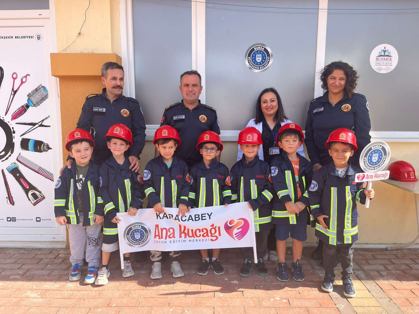 Bu yıl İtfaiye Haftası etkinliklerine, Büyükşehir Belediyesi’nin Ana Kucağı Eğitim Merkezlerinde eğitim gören minikler de dahil edildi. İtfaiye ekipleri tarafından Karacabey, Gemlik, Hamitler, İnegöl, Yenişehir ve Gürsu Ana Kucaklarındaki miniklere hem itfaiyenin çalışma alanları hem de yangından korunma yolları hakkında bilgiler verdi. İtfaiye kıyafetleri giyip itfaiye araçlarına binen çocuklar, minik itfaiyeciler olarak hatıra fotoğrafları da çektirdi.