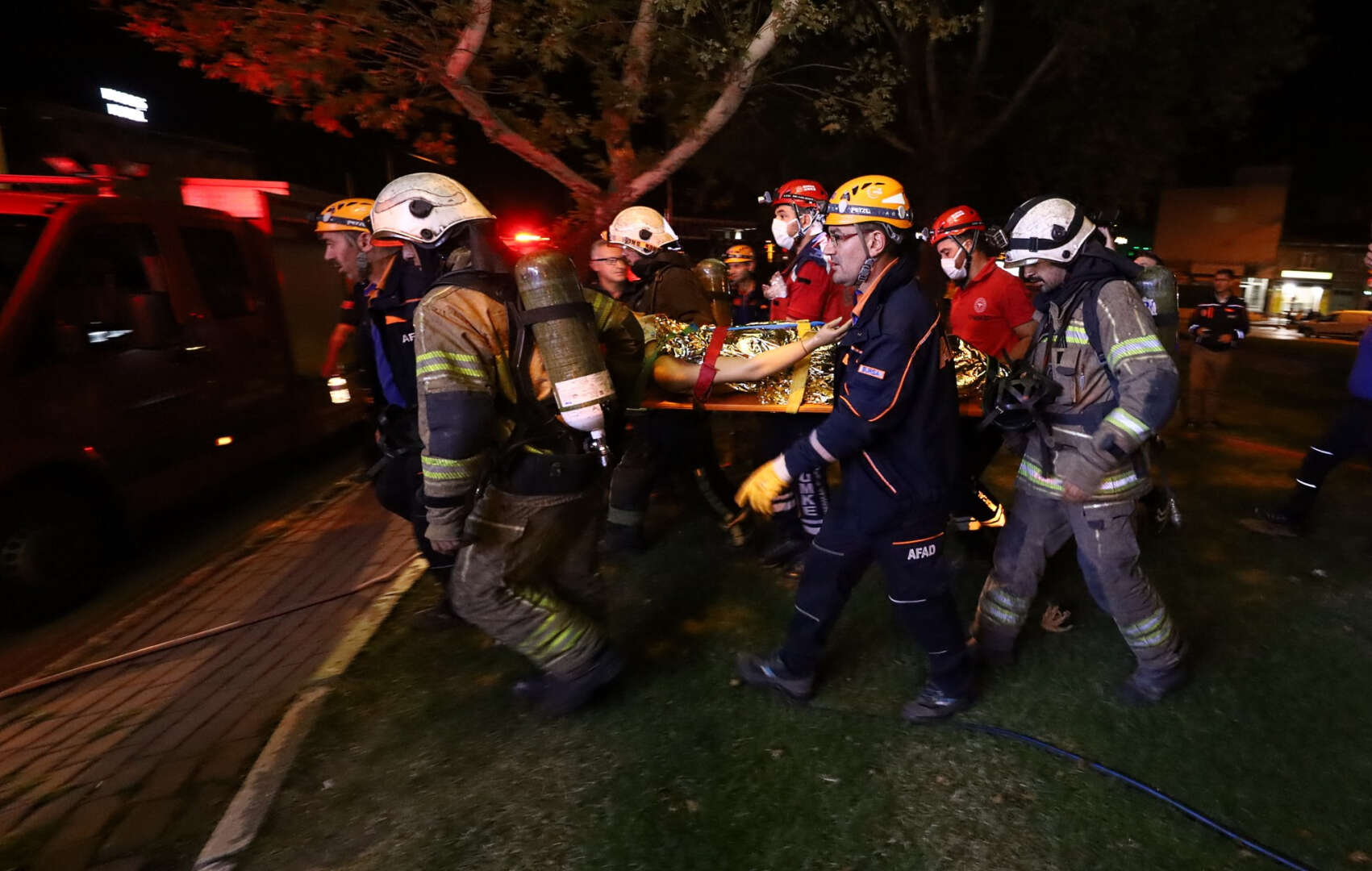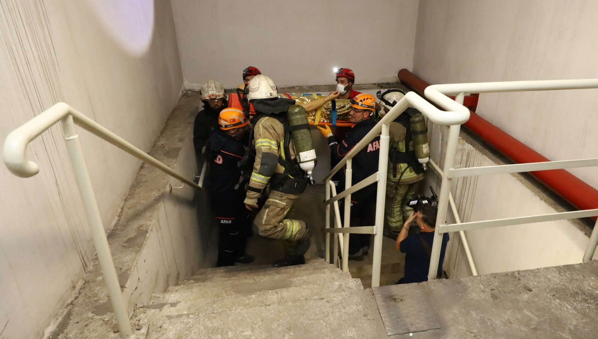 Haber gelmesi üzerine harekete geçen Büyükşehir Belediyesi itfaiyesi, AFAD ve UMKE ekipleri, vagonun kaldığı yere en yakın kaçış galerisinin bulunduğu noktaya geldi. Hattaki elektriğin kesilmesinin ardından itfaiye ekipleri, yangın söndürme çalışmasını başlattı. AFAD ve UMKE ekipleri, 2’si ağır 4 yaralıyı sedye ile vagondan çıkardı.