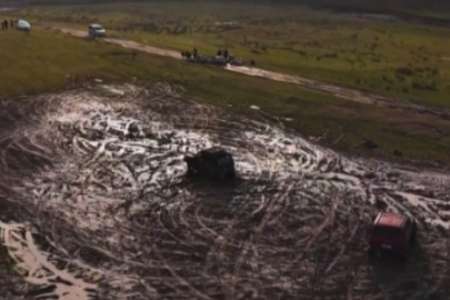 Günlerdir süren yağışların ardından çamur içinde 4x4 araçlarıyla off-road yapan grup doğanın tadını çıkardı. Off-road grubunun çamur içerisindeki dansı drone ile görüntülendi.