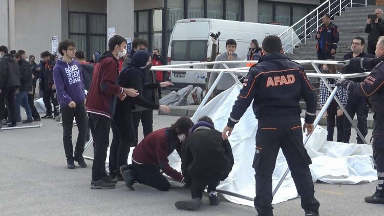 Ardından AFAD ekipleri öğrencilere deprem sonrası çadırların nasıl kurulacağını gösterdi. Öğrenciler de uygulamalı olarak çadırları kurdu. Sivil arama kurtarma ekipleri de öğrencilere deprem esnasında yapılması gerekenleri anlattı.