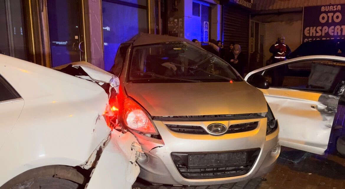 Bursa'da yağışlı havanın etkisiyle kontrolden çıkan otomobilin sürücüsü, park halindeki araçlara çarptı.
