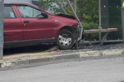 Bursa'nın Yıldırım ilçesi 75. Yıl mahallesinde kontrolden çıkan bir otomobil, otobüs durağına çarparak durabildi.