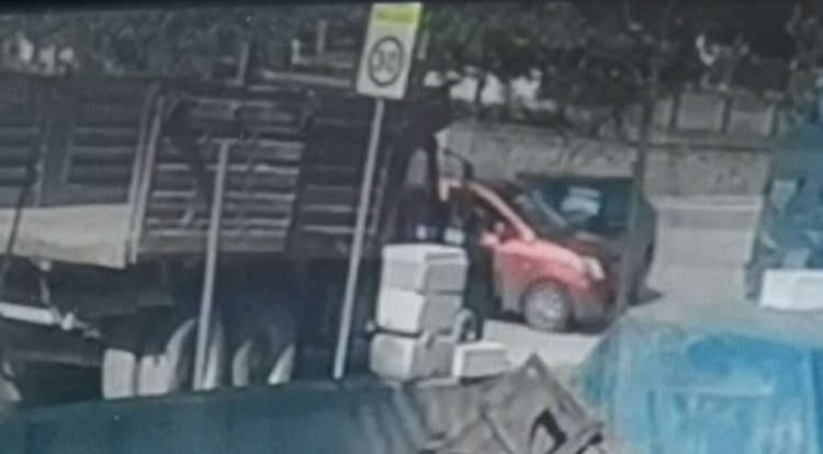 Bursa'nın İnegöl ilçesinde bir otomobil, başka bir otomobille çarpıştığı kazada sürüklenerek park halindeki kamyona çarptı. 1 kişinin yaralandığı kaza, bir işyerinin güvenlik kameralarına saniye saniye yansıdı.