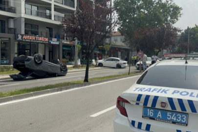Bursa'da park halindeki araca çarpan otomobil takla attı. Kazada 1 kişi yaralandı.