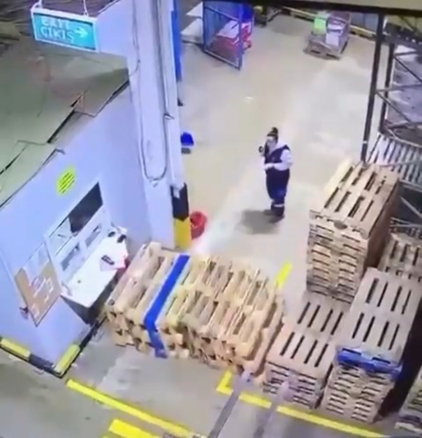 Ancak son bıraktığı parti dengesiz olunca, paletler yere devrildi. O sırada forkliftin hemen yanında bulunan kadın çalışan, devrilenpaletlerin altında kalmaktan kıl payı kurtuldu.