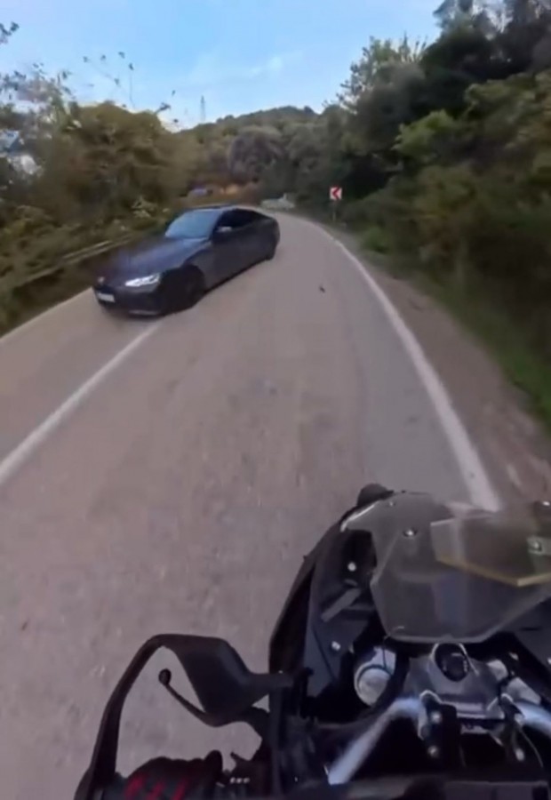 Bursa Gemlik yolu üzerinde seyir halinde olan bir motosikletli, kontrolden çıkarak karşı şeride geçen otomobile çarpmaktan son anda kurtuldu. O anlar motosikletlinin kask kamerasına saniye saniye yansıdı.