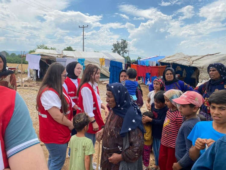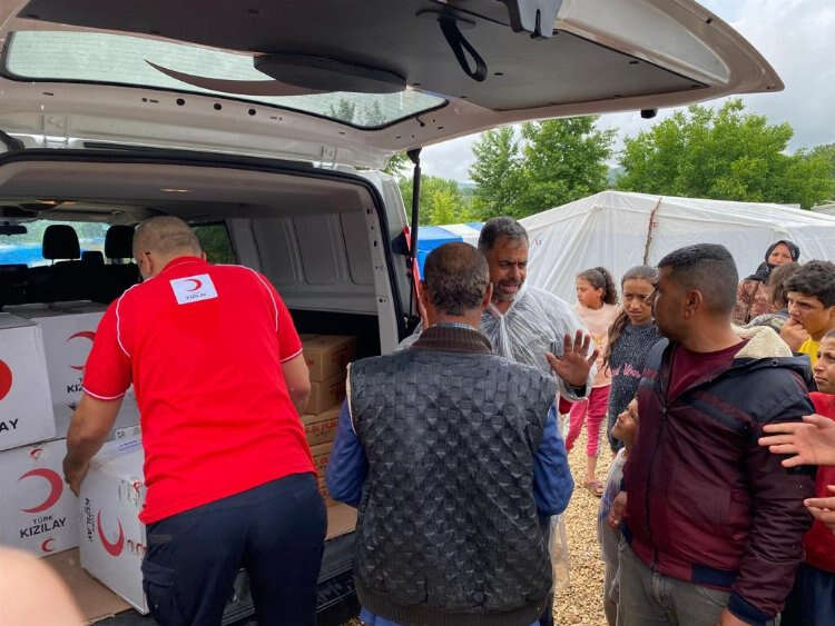 Kızılay ekipleri de bölgeye gelerek battaniye, gıda kolisi ve mobil beslenme araçlarıyla kumanya ile su dağıtımında bulundu.