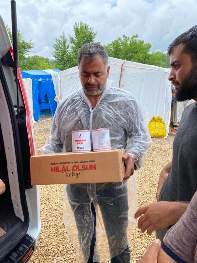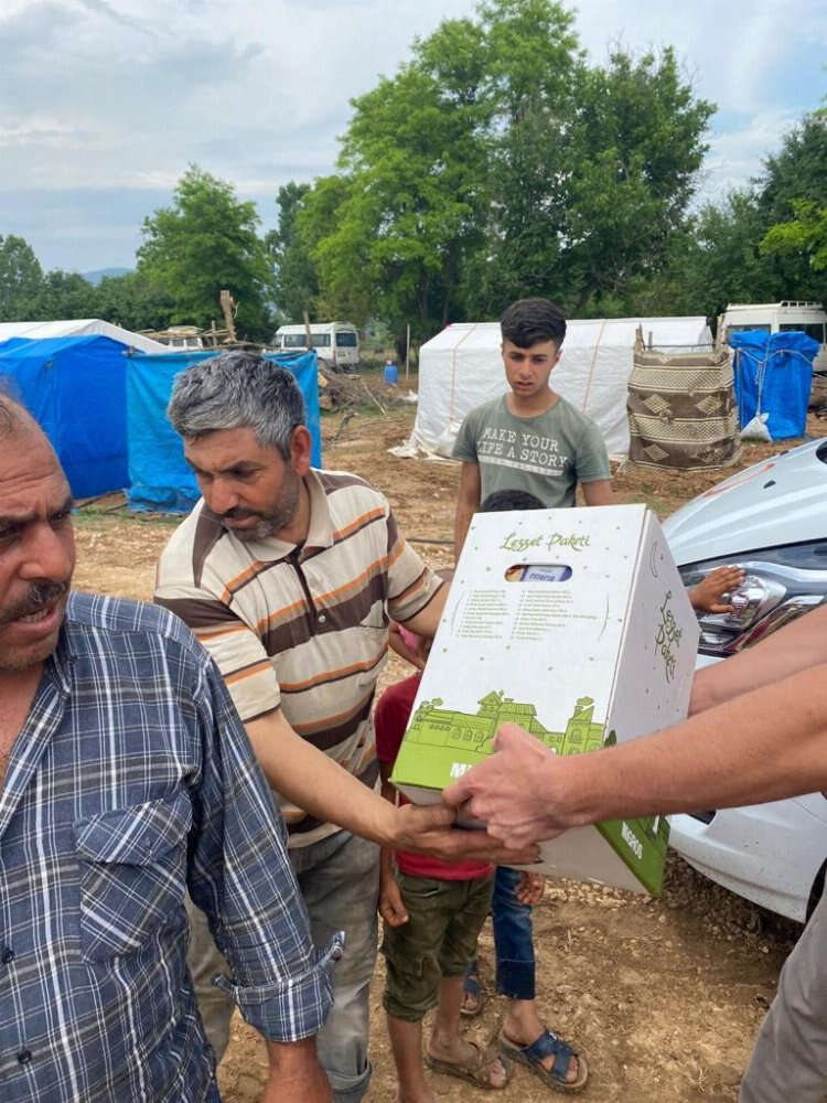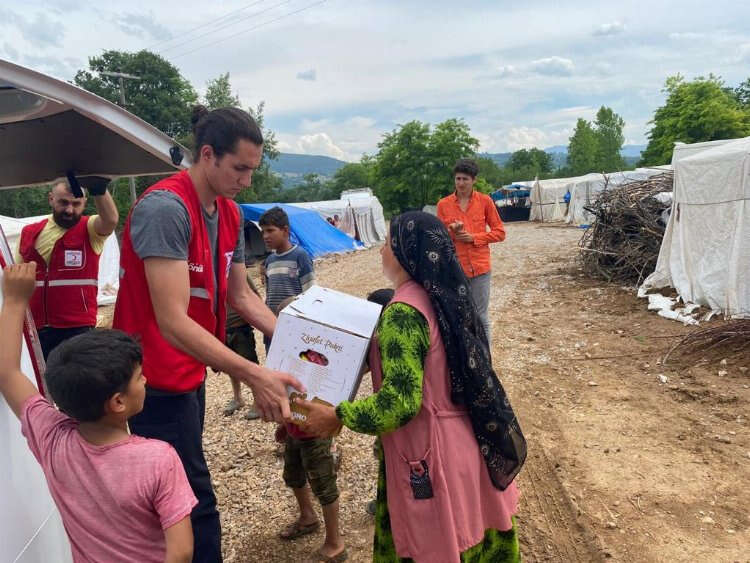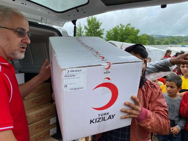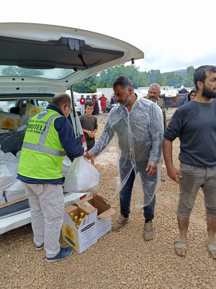 Bursa'da selden etkilenen çadır kentteki işçilere İnegöl Belediyesi ve Kızılay'dan yardım eli